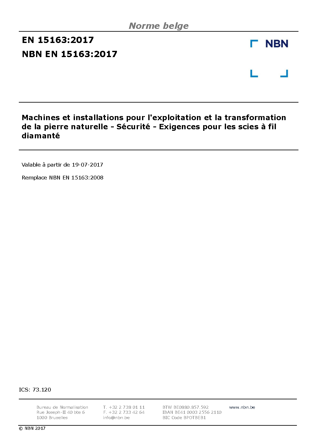 | Publisher | Bureau de Normalisation Belge (NBN) |