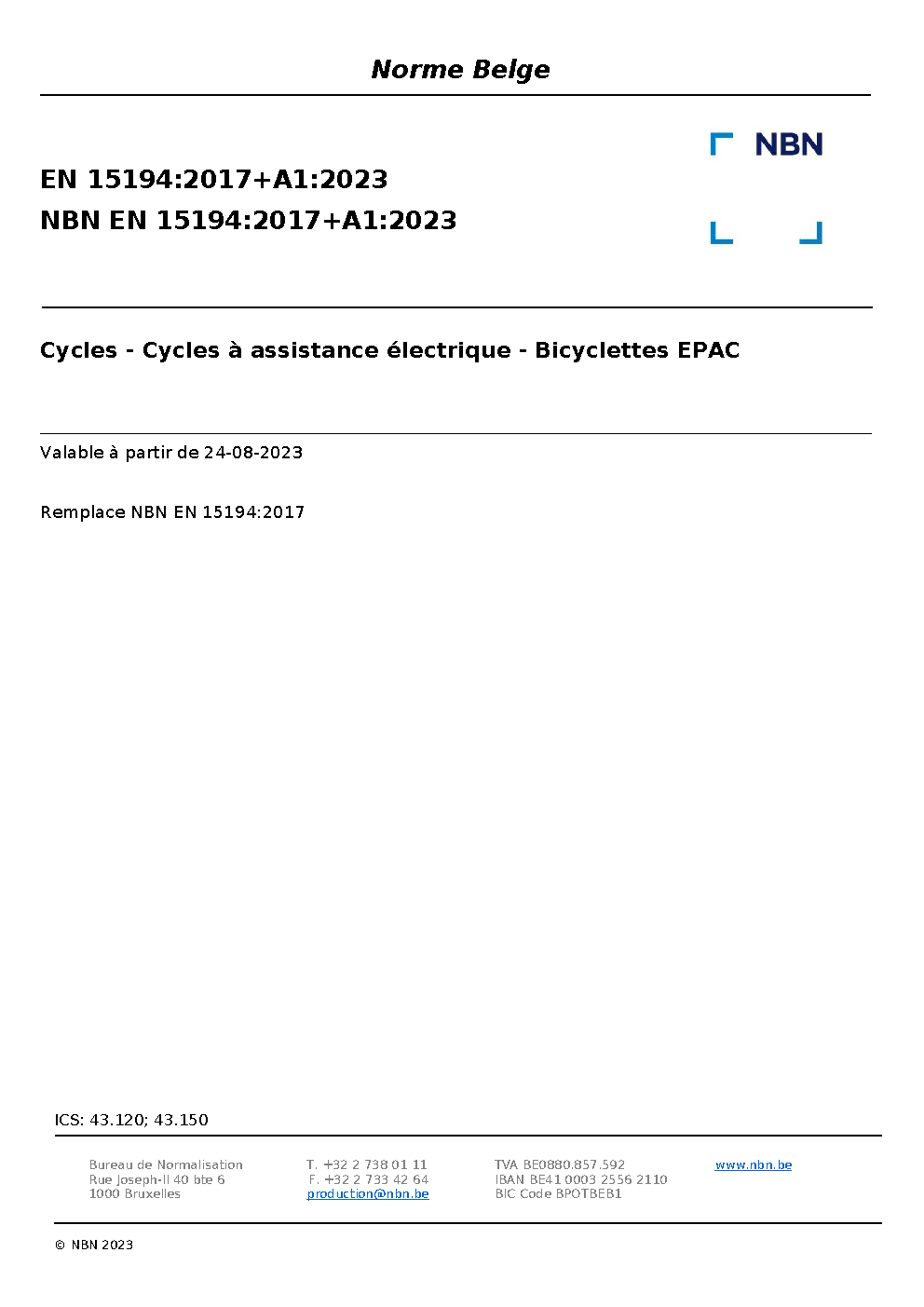 This European Standard specifies safety requirements and test methods for the assessment of the design and assembly of electrically power assisted bicycles and sub-assemblies for systems using battery voltage up to 48 VDC or integrated a battery charger with a 230 V input.