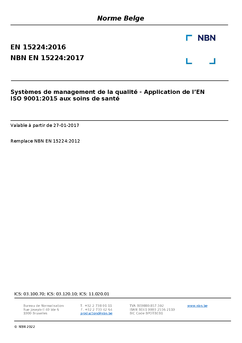 This European Standard aims to adjust and specify the requirements, as well as the “product” concept and customer perspectives in EN ISO 9001:2008 to the specific conditions for health care where products are mainly services and customers are mainly patients.