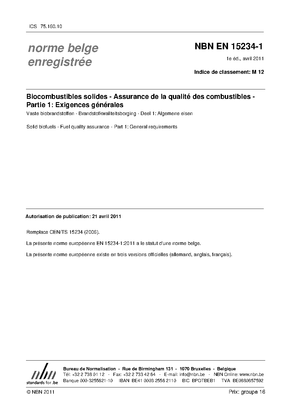 | Publisher | Bureau de Normalisation Belge (NBN) |