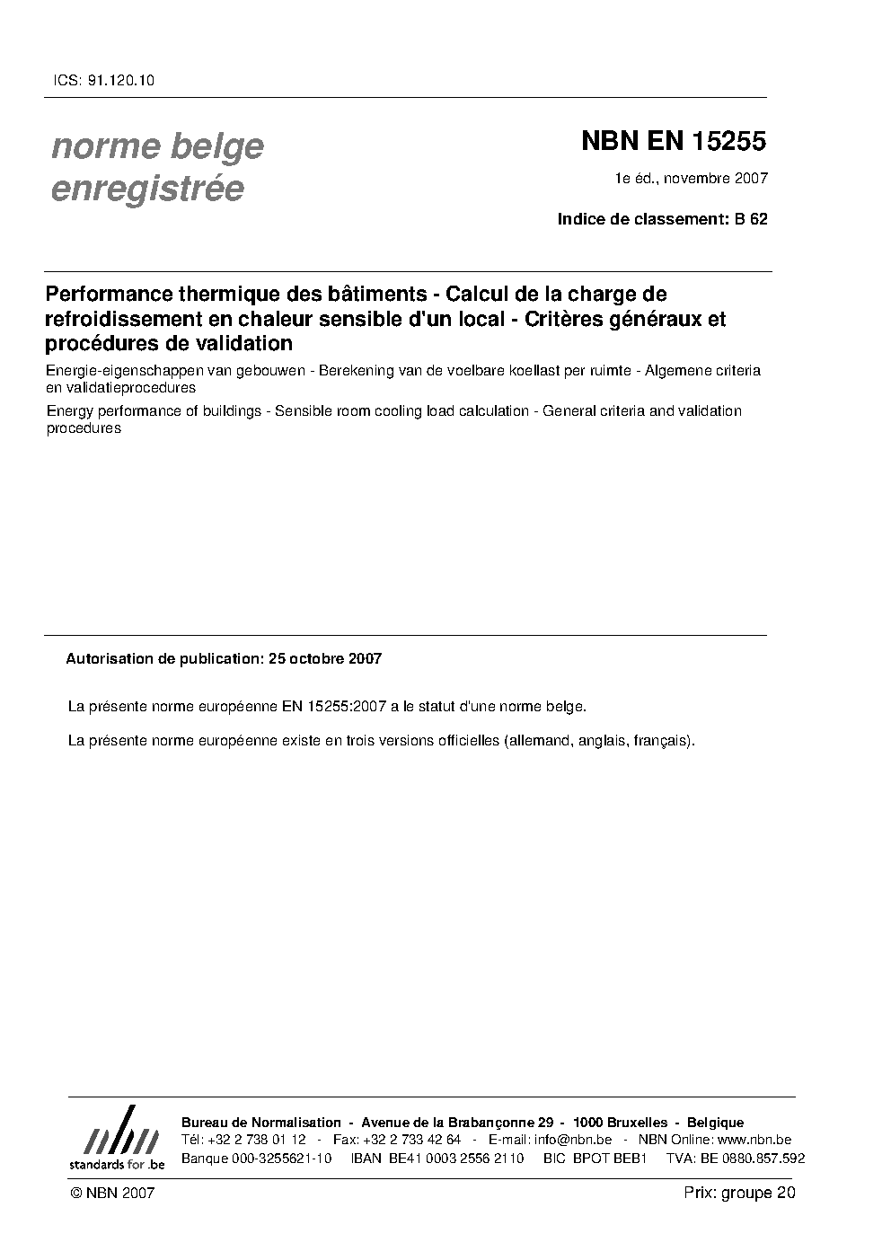| Publisher | Bureau de Normalisation Belge (NBN) |