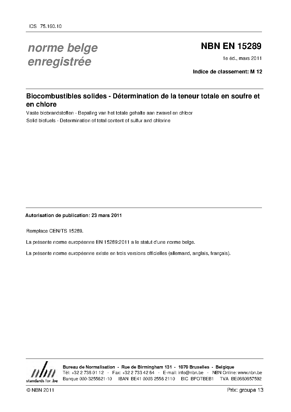 | Publisher | Bureau de Normalisation Belge (NBN) |