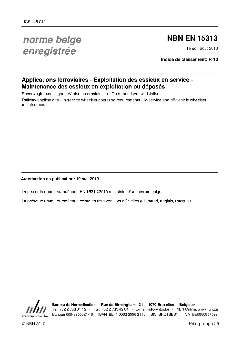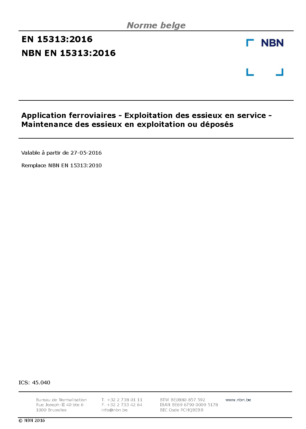| Publisher | Bureau de Normalisation Belge (NBN) |
