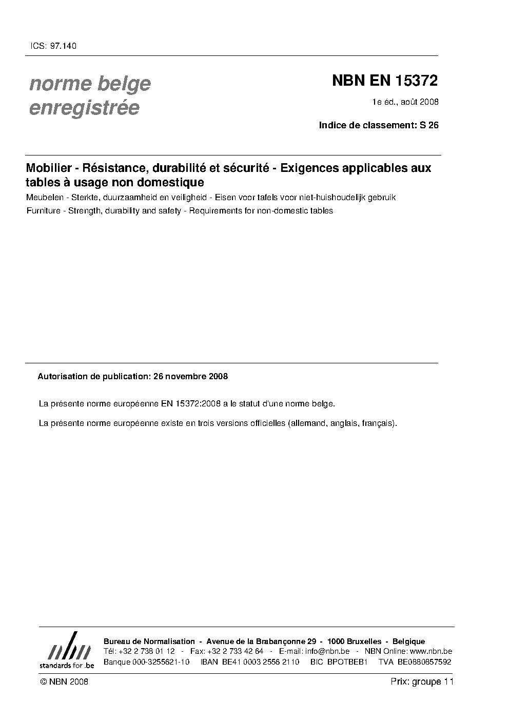 | Publisher | Bureau de Normalisation Belge (NBN) |
