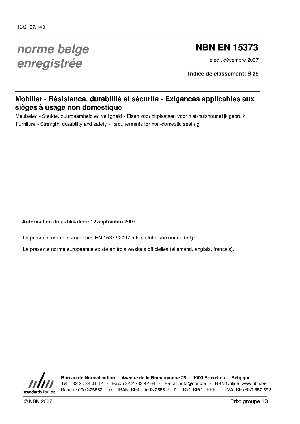 | Publisher | Bureau de Normalisation Belge (NBN) |