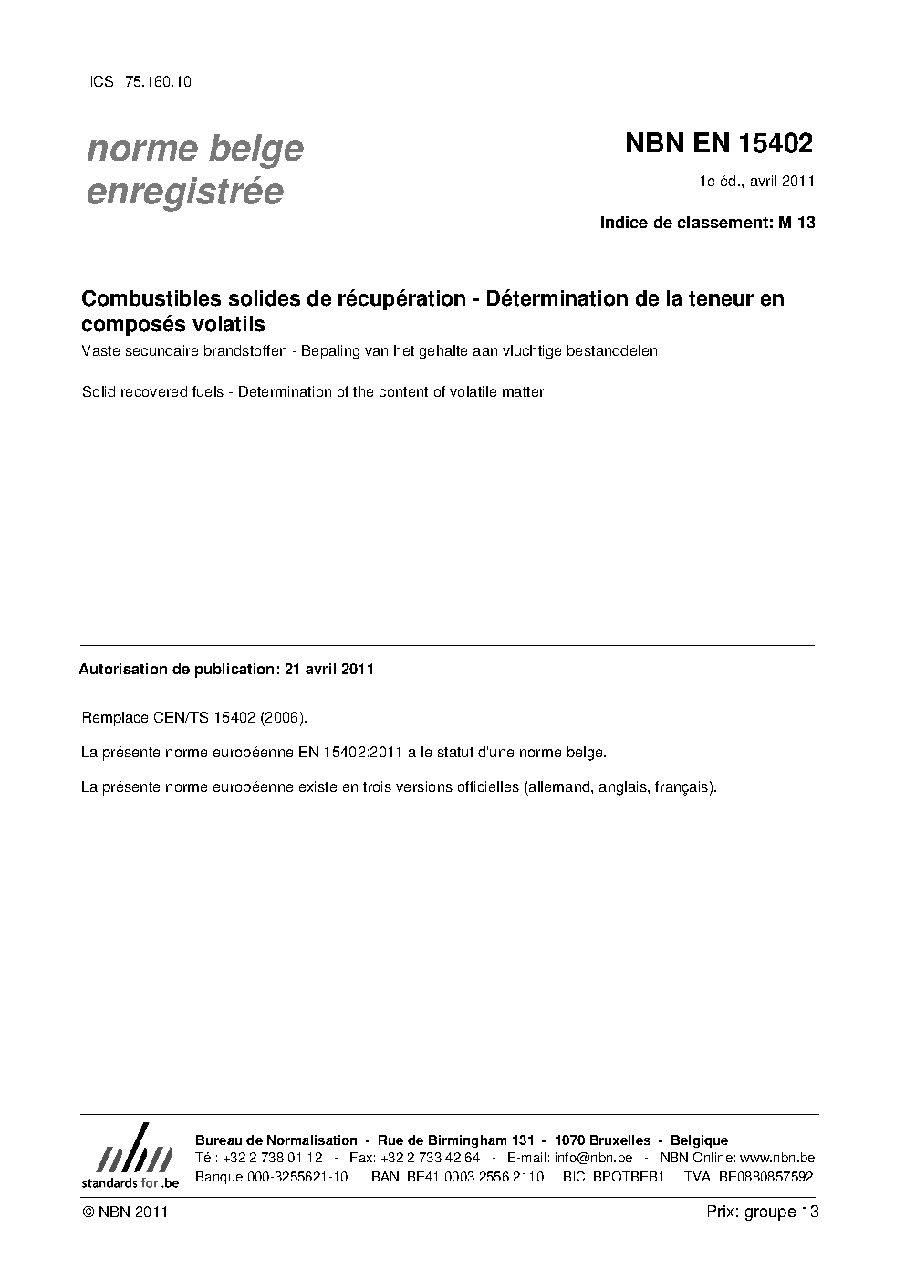| Publisher | Bureau de Normalisation Belge (NBN) |