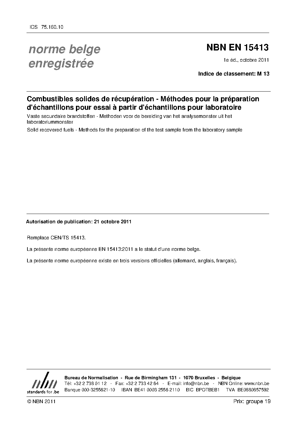 | Publisher | Bureau de Normalisation Belge (NBN) |