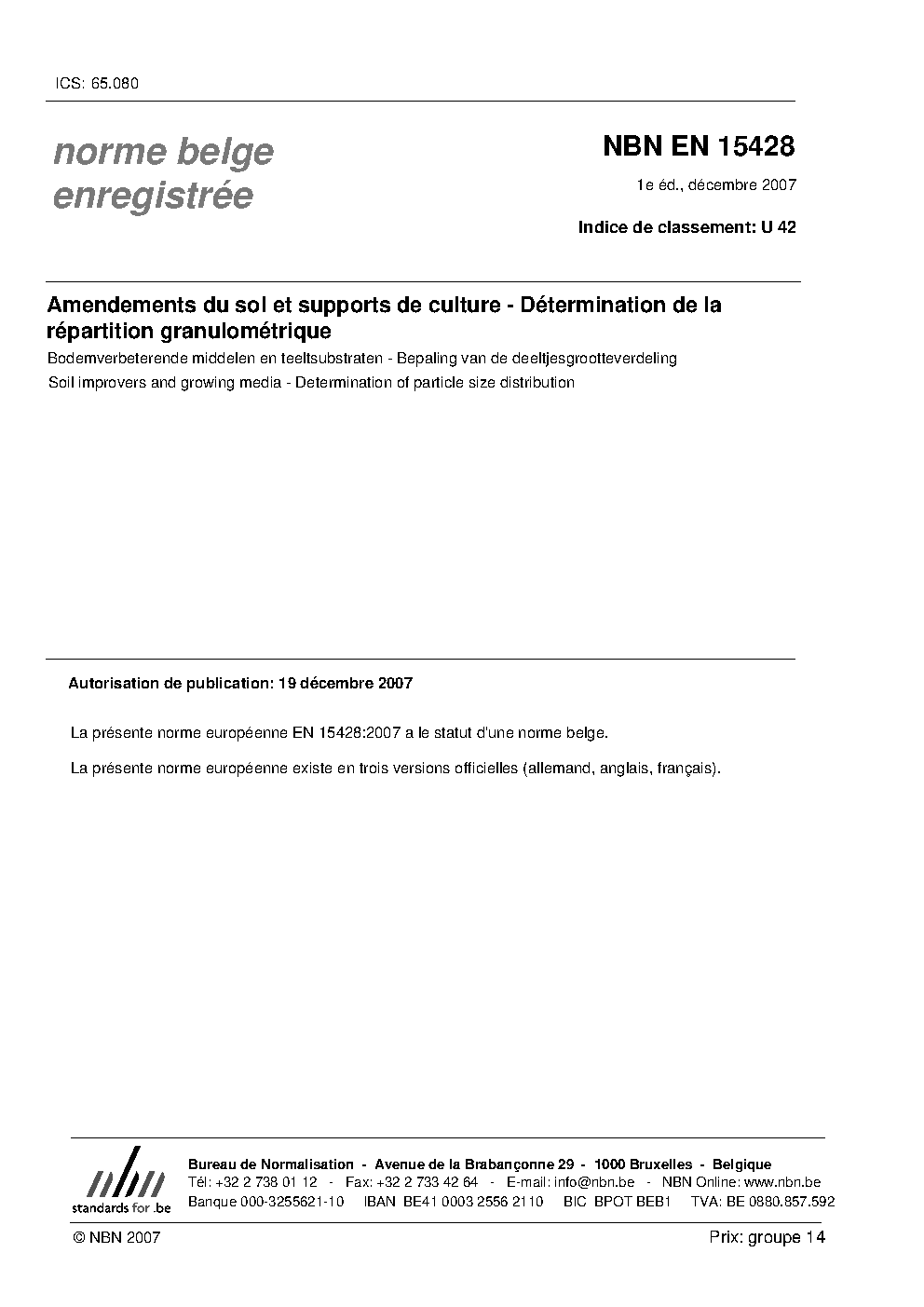 | Publisher | Bureau de Normalisation Belge (NBN) |