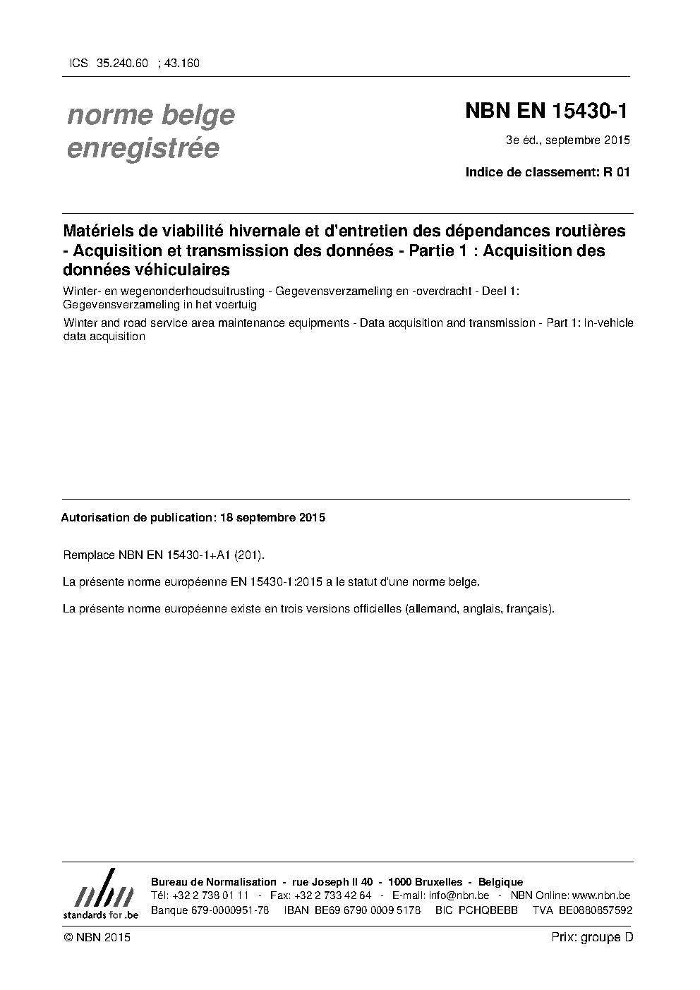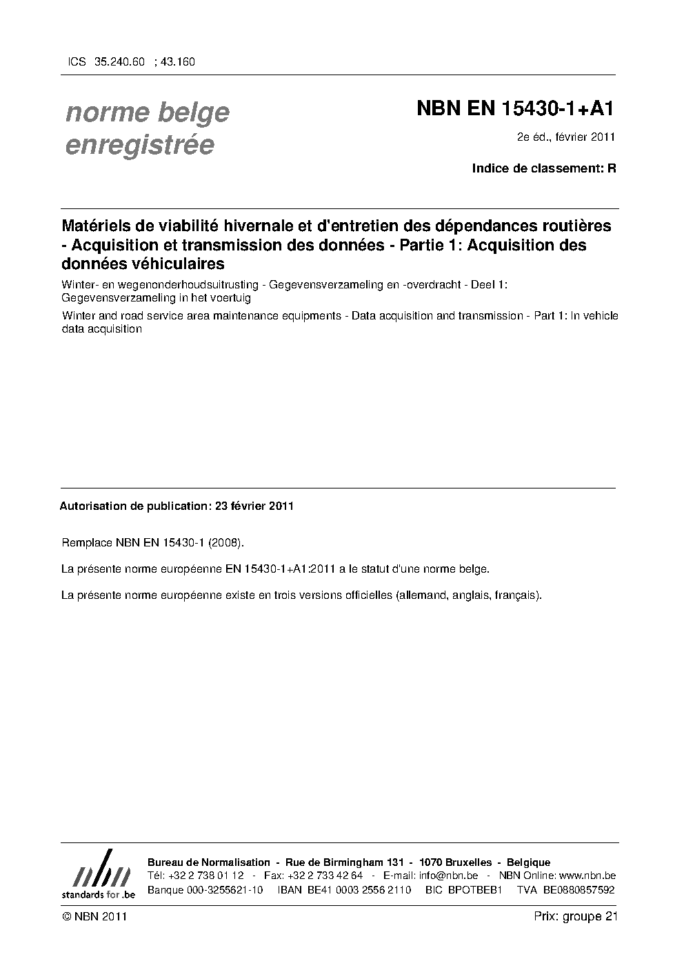 | Publisher | Bureau de Normalisation Belge (NBN) |