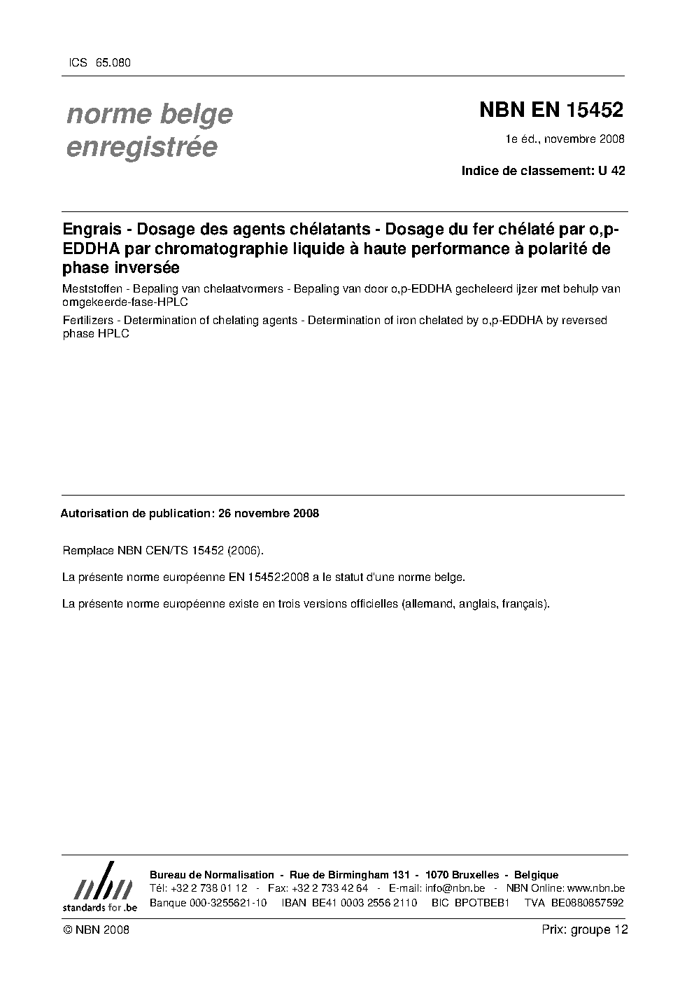 | Publisher | Bureau de Normalisation Belge (NBN) |