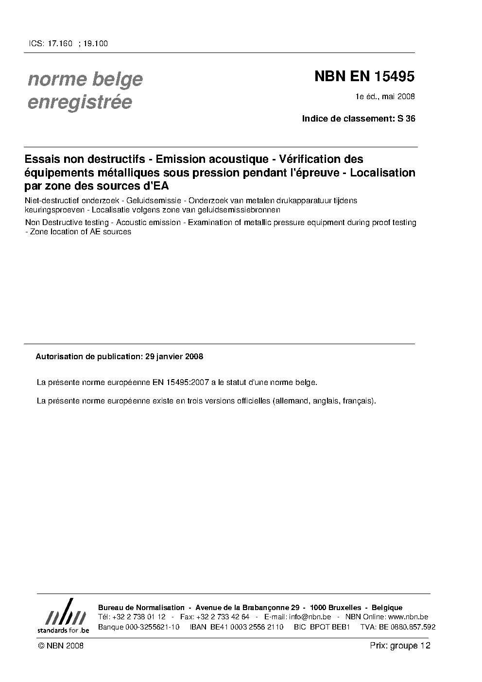 | Publisher | Bureau de Normalisation Belge (NBN) |