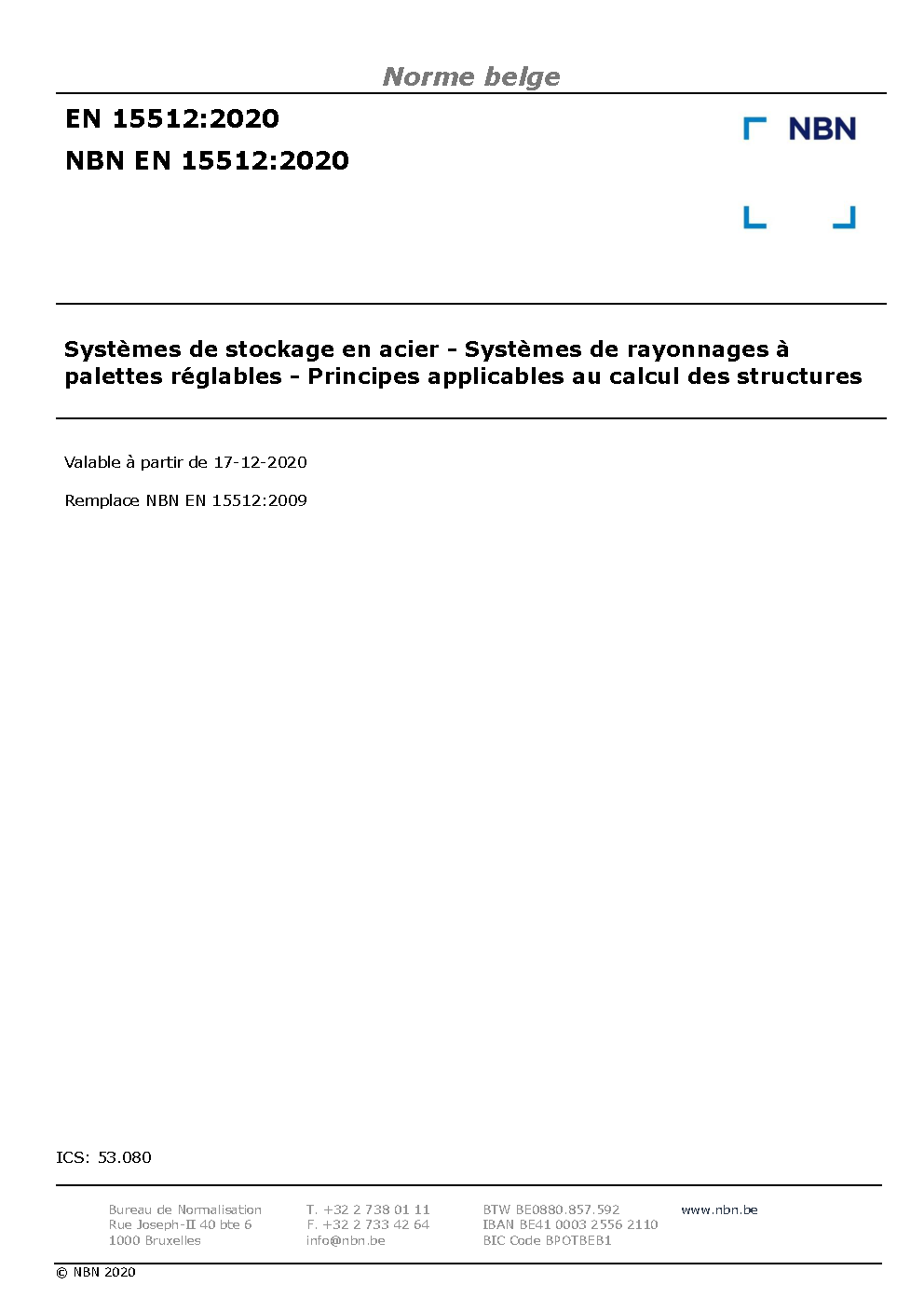 | Publisher | Bureau de Normalisation Belge (NBN) |