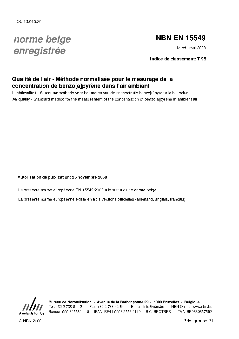 | Publisher | Bureau de Normalisation Belge (NBN) |