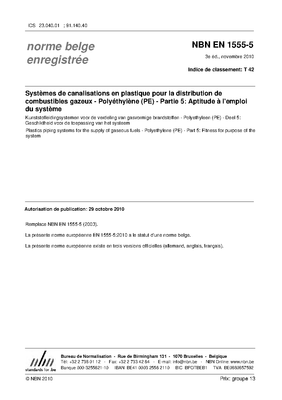 | Publisher | Bureau de Normalisation Belge (NBN) |