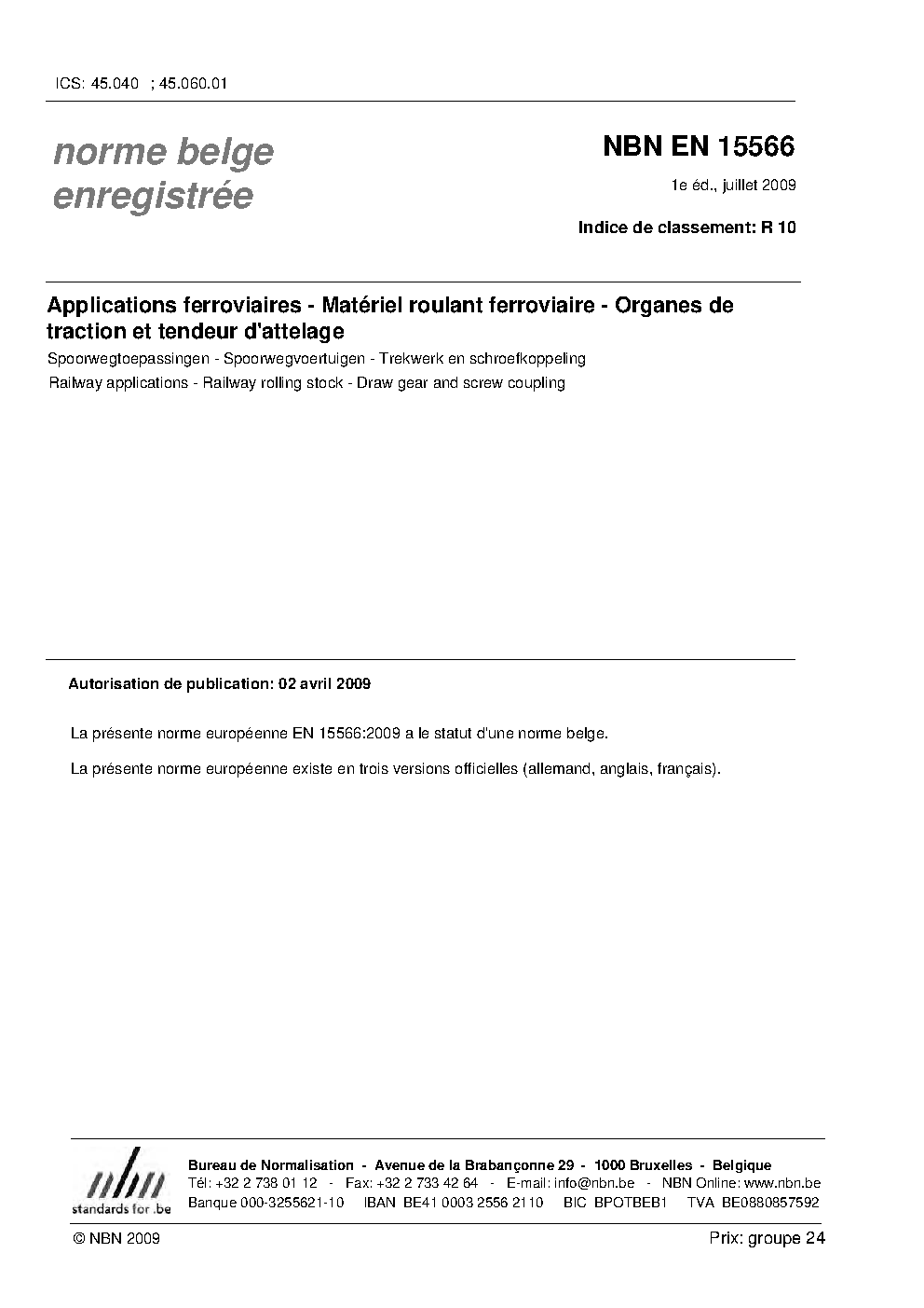 | Publisher | Bureau de Normalisation Belge (NBN) |
