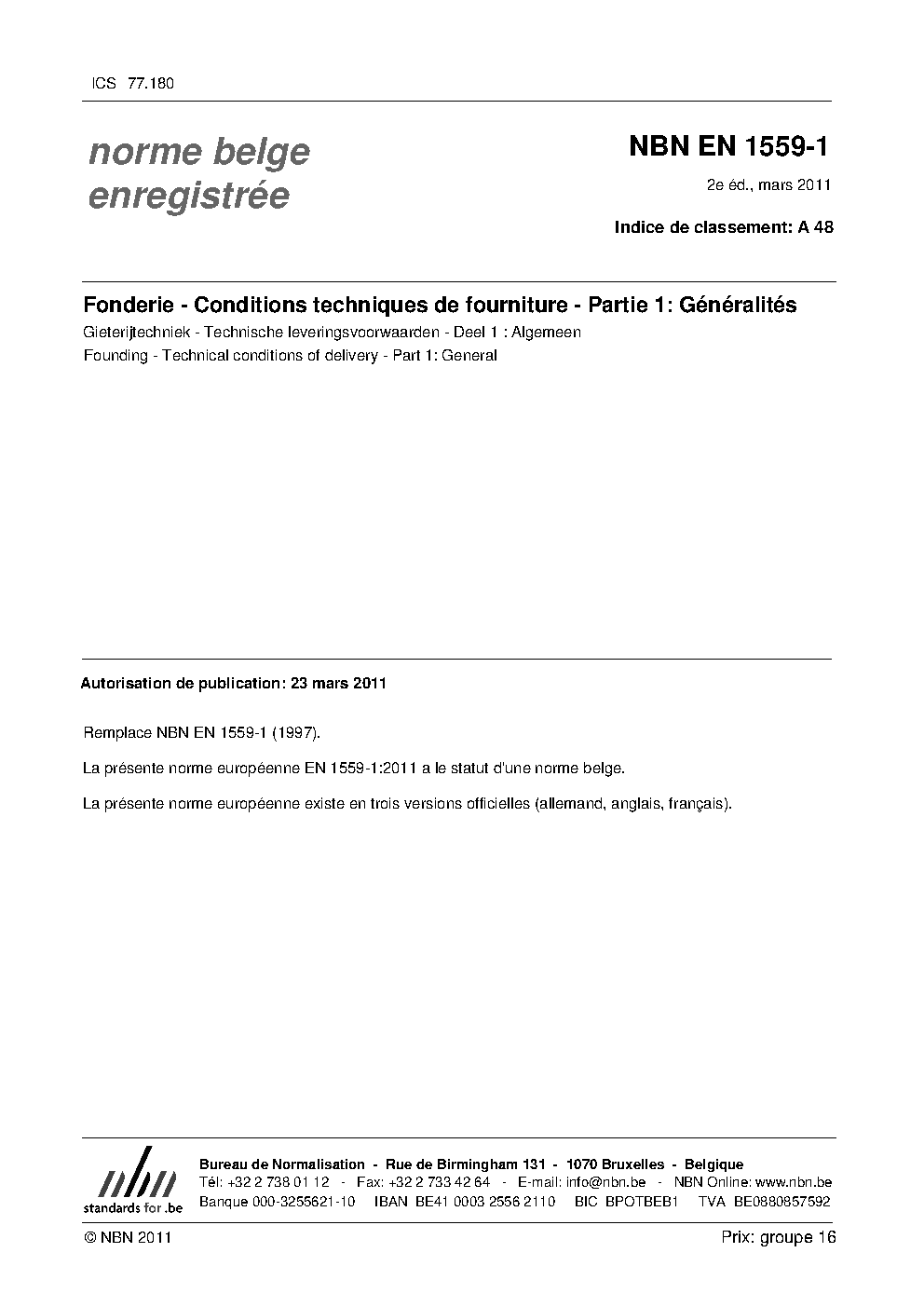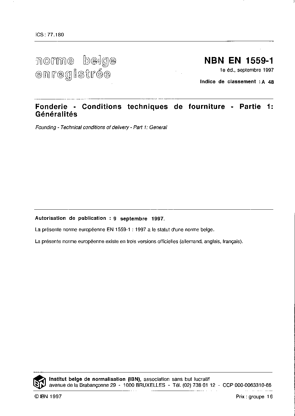 | Publisher | Bureau de Normalisation Belge (NBN) |