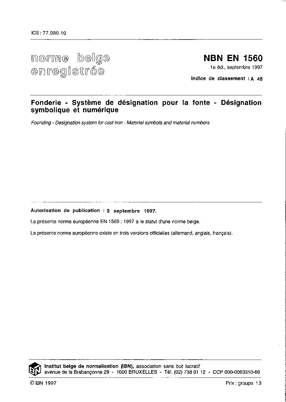 | Publisher | Bureau de Normalisation Belge (NBN) |