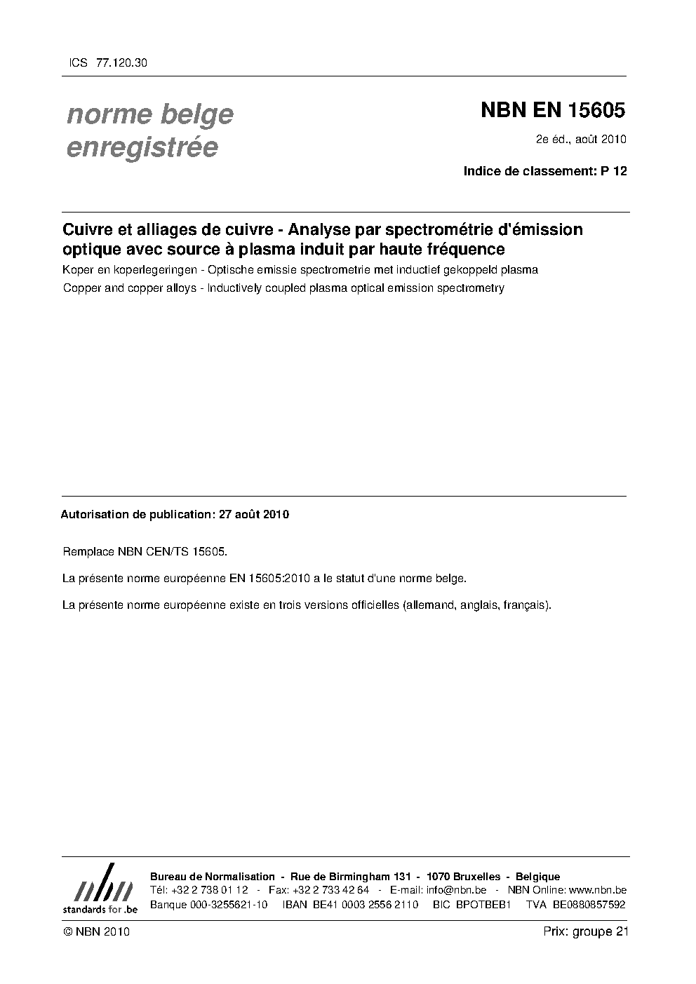| Publisher | Bureau de Normalisation Belge (NBN) |