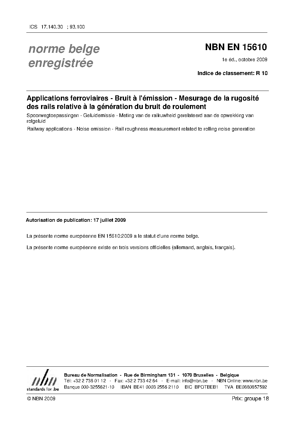 | Publisher | Bureau de Normalisation Belge (NBN) |
