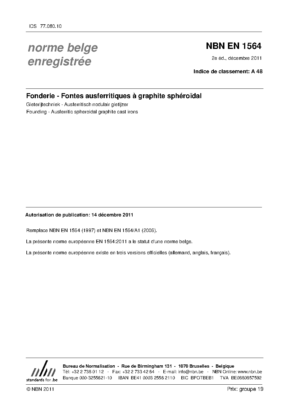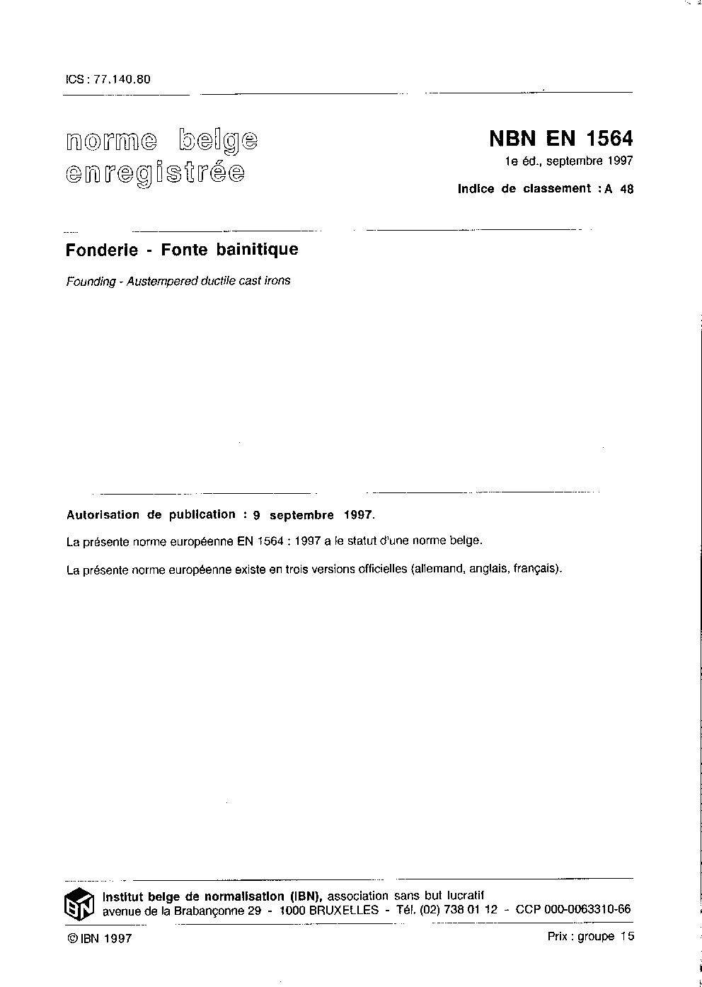| Publisher | Bureau de Normalisation Belge (NBN) |