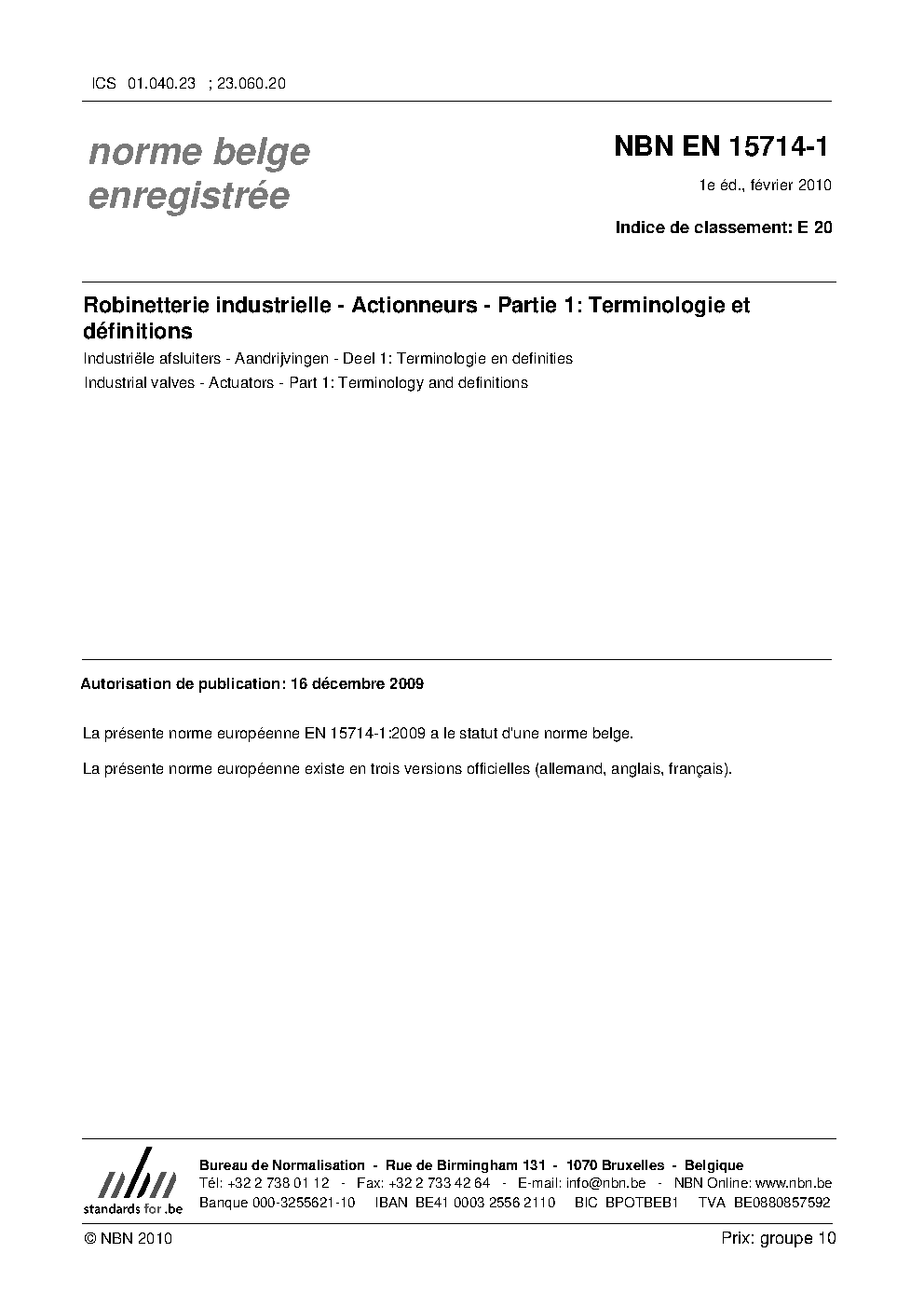 | Publisher | Bureau de Normalisation Belge (NBN) |