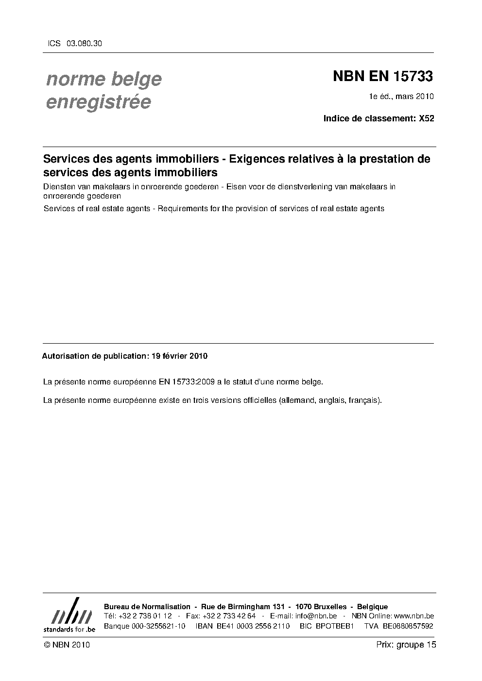 | Publisher | Bureau de Normalisation Belge (NBN) |