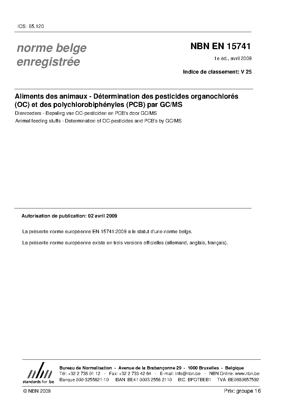 | Publisher | Bureau de Normalisation Belge (NBN) |