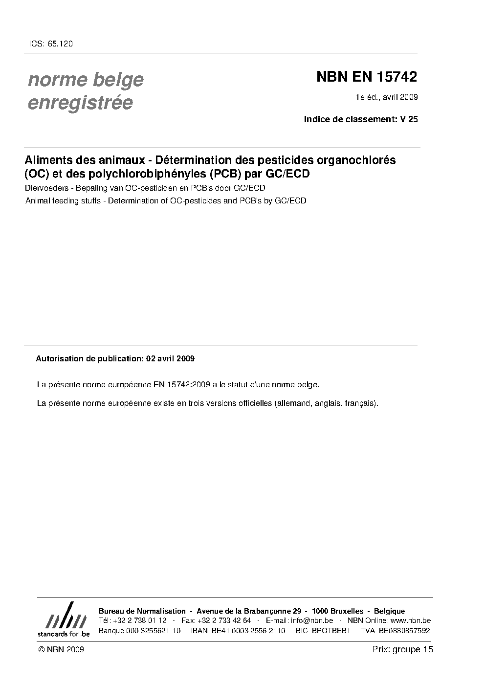 | Publisher | Bureau de Normalisation Belge (NBN) |