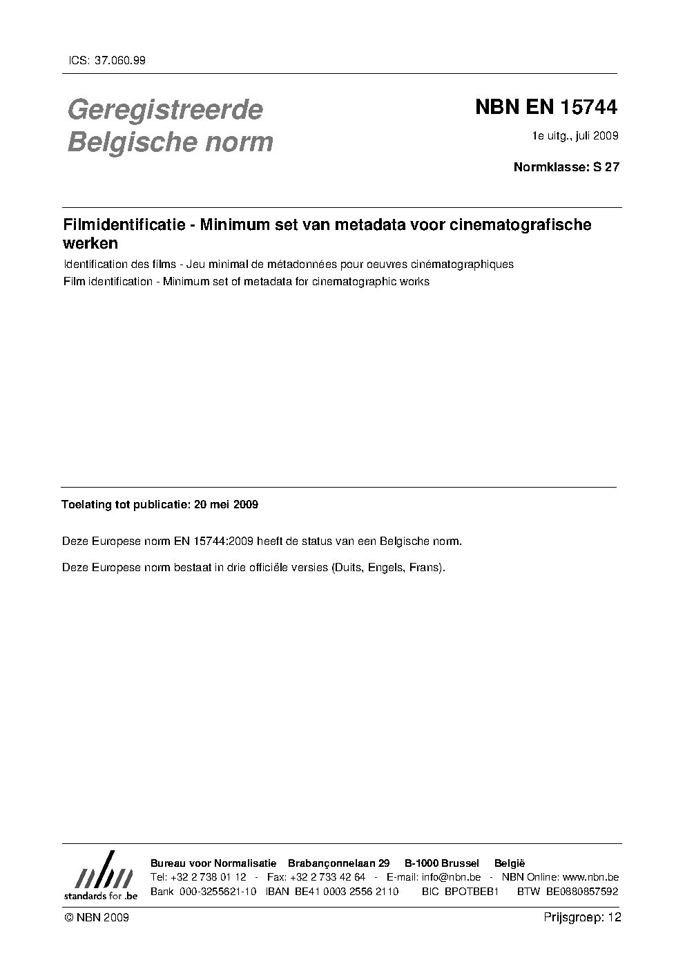 | Publisher | Bureau de Normalisation Belge (NBN) |