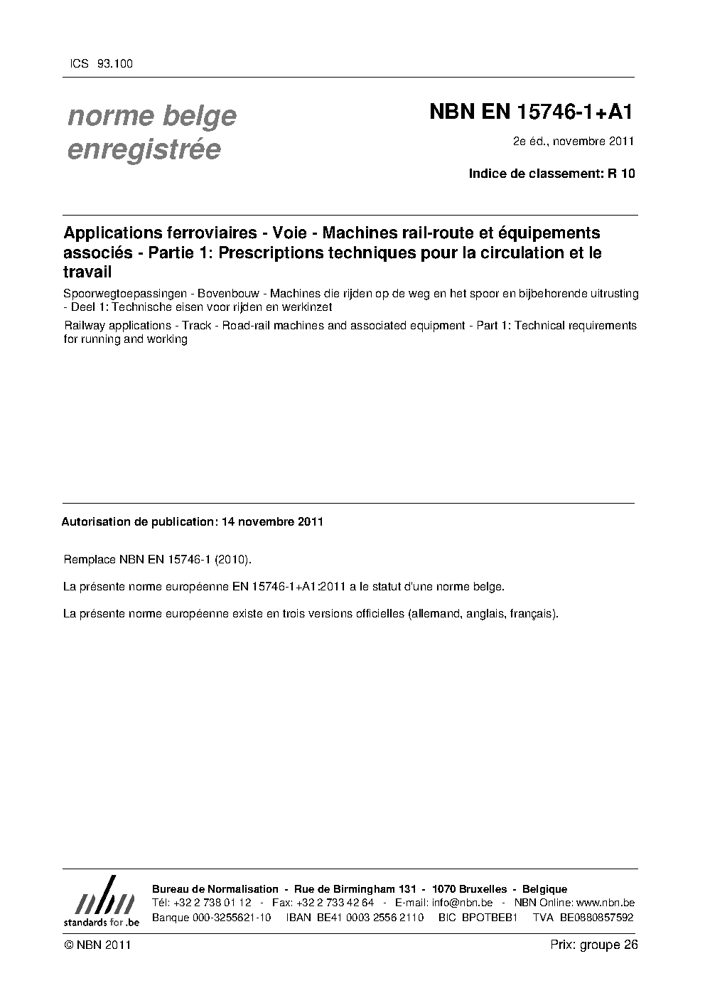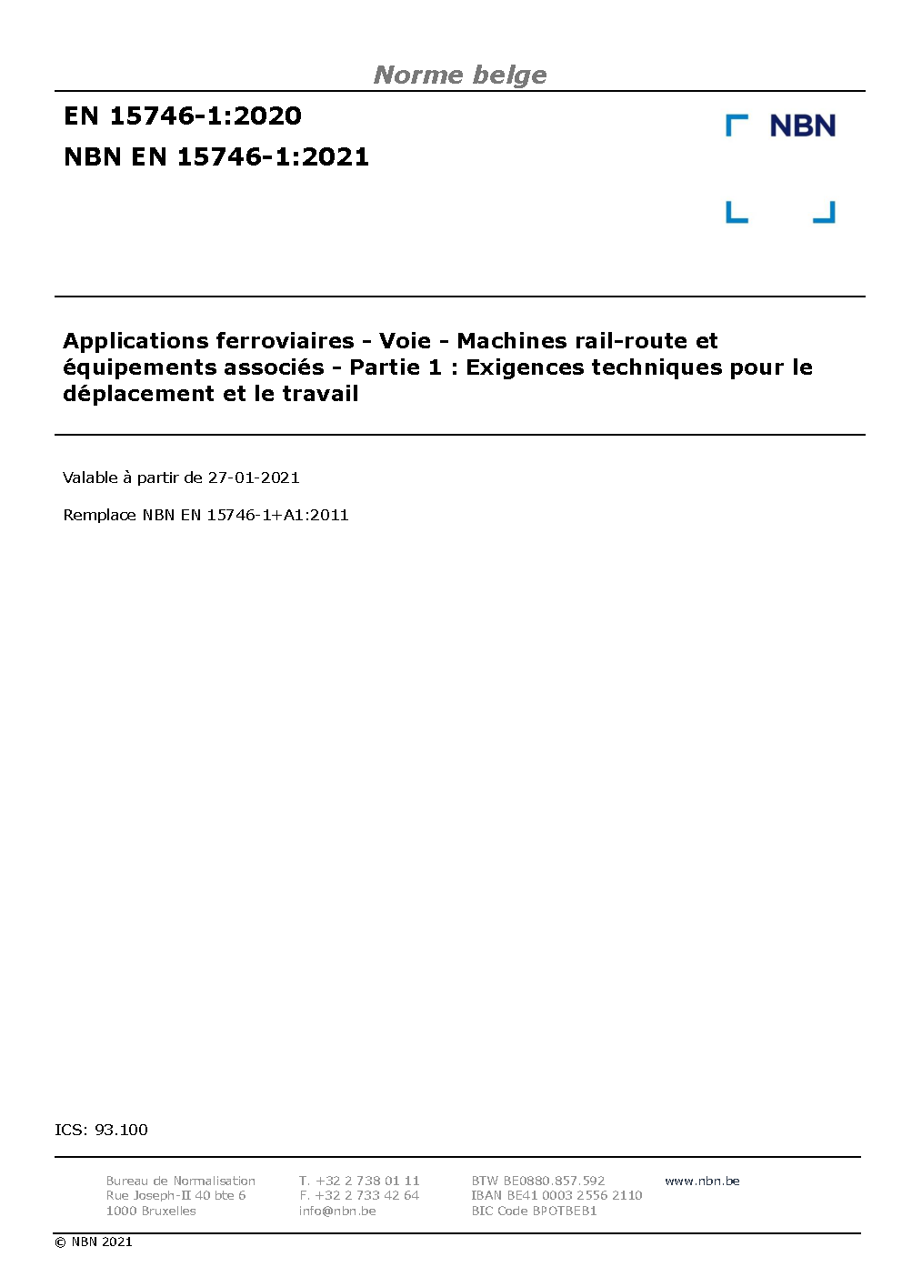 | Publisher | Bureau de Normalisation Belge (NBN) |