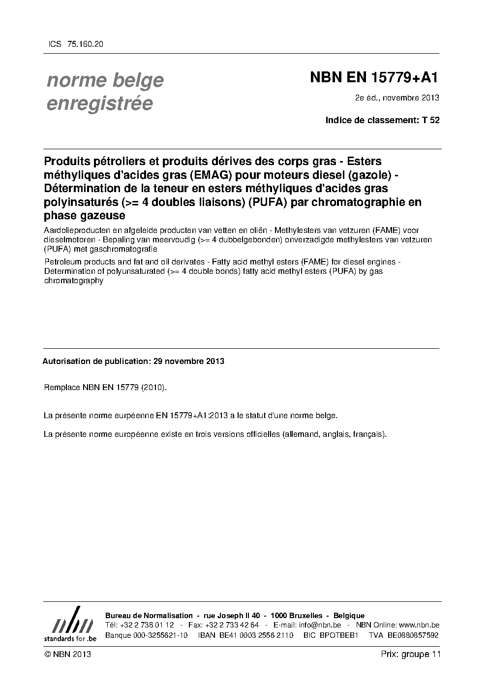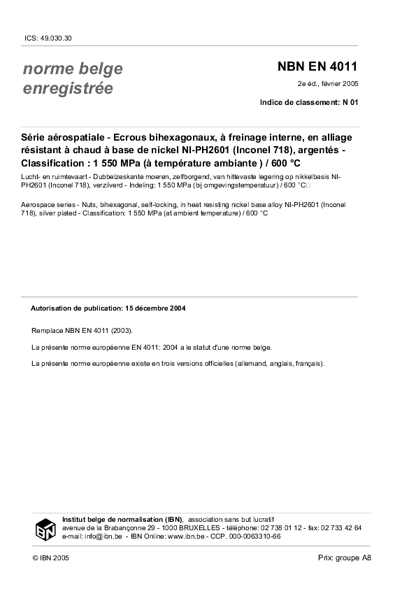 | Publisher | Bureau de Normalisation Belge (NBN) |
