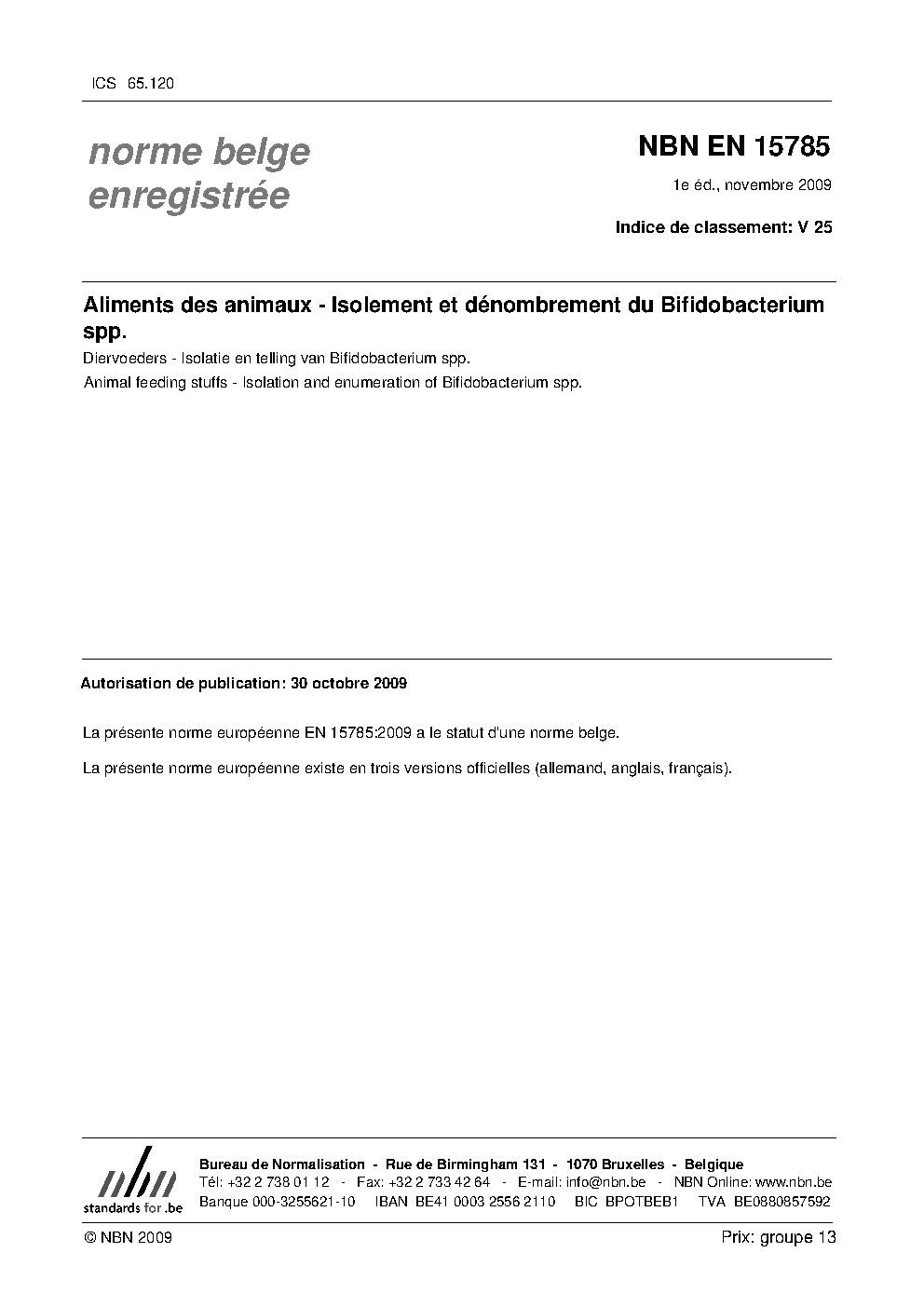 | Publisher | Bureau de Normalisation Belge (NBN) |