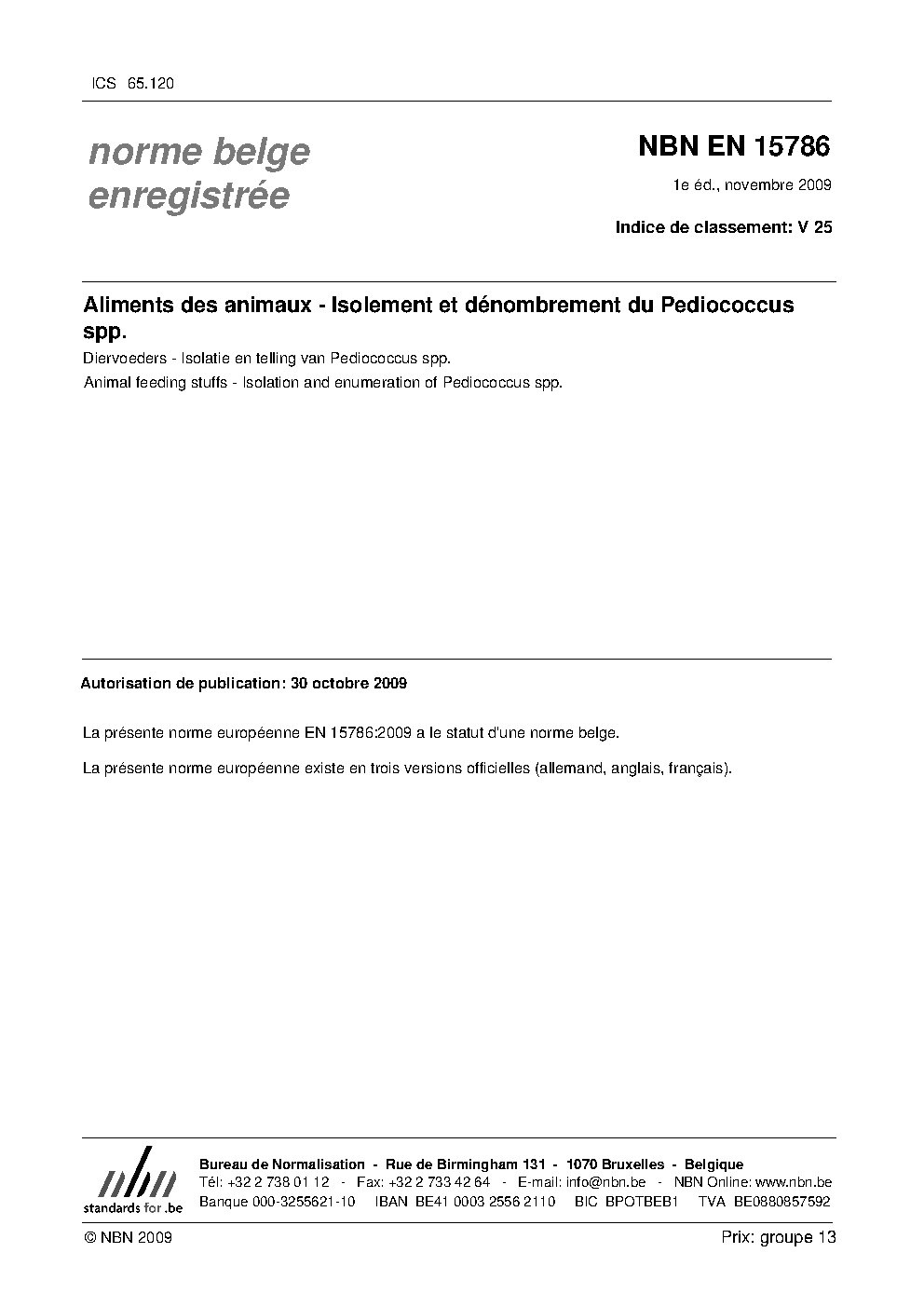 | Publisher | Bureau de Normalisation Belge (NBN) |