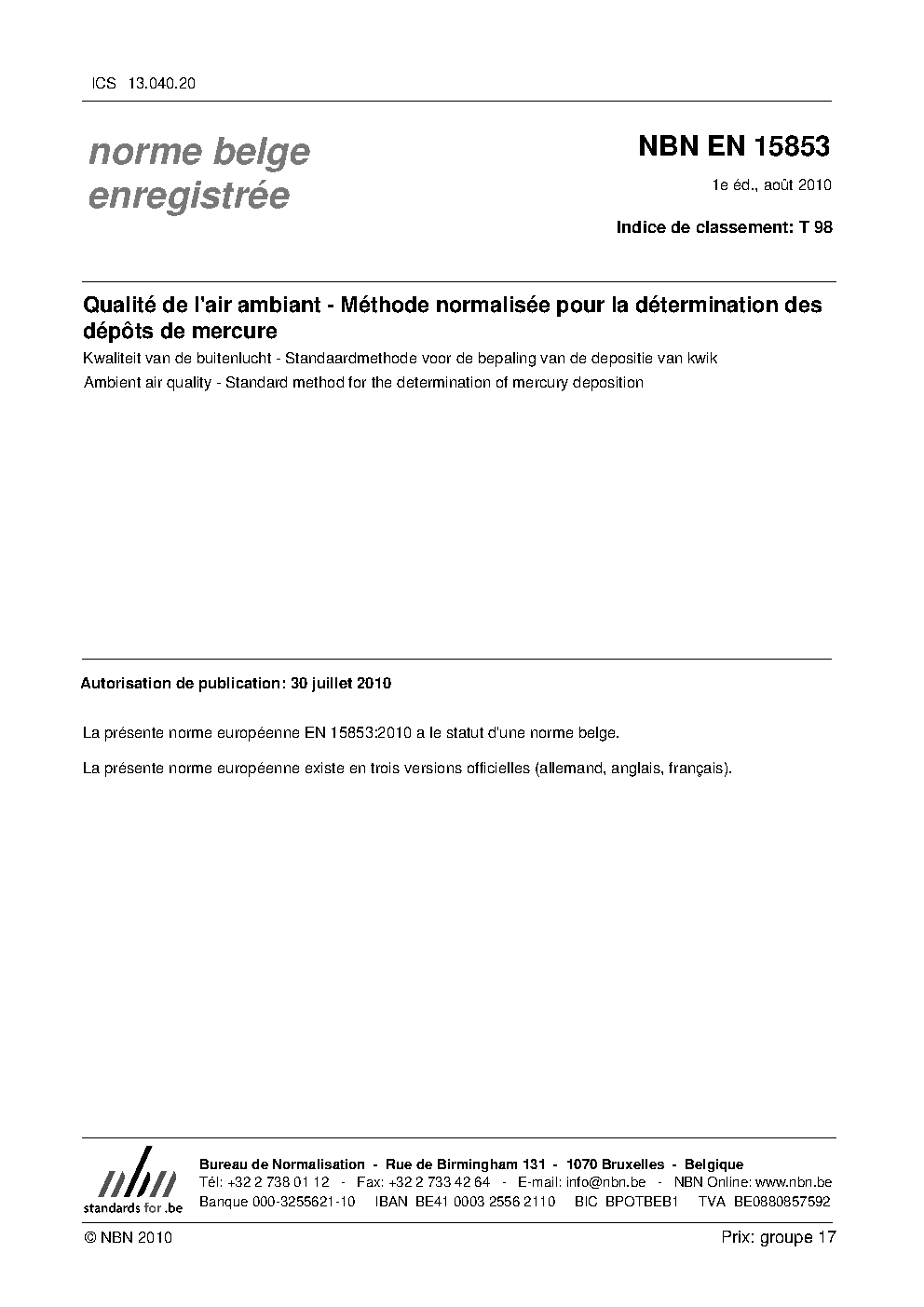 | Publisher | Bureau de Normalisation Belge (NBN) |