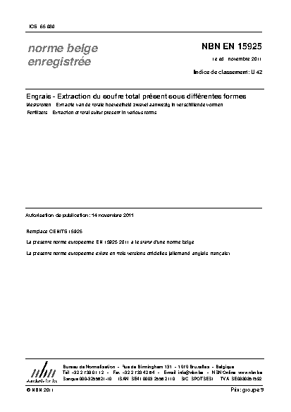 | Publisher | Bureau de Normalisation Belge (NBN) |
