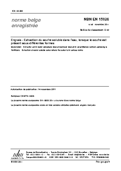 | Publisher | Bureau de Normalisation Belge (NBN) |