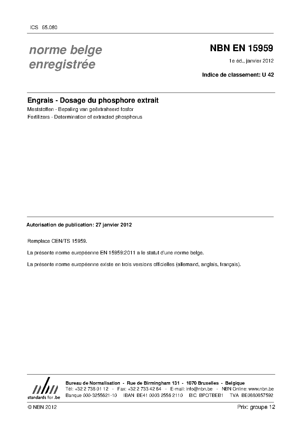 | Publisher | Bureau de Normalisation Belge (NBN) |