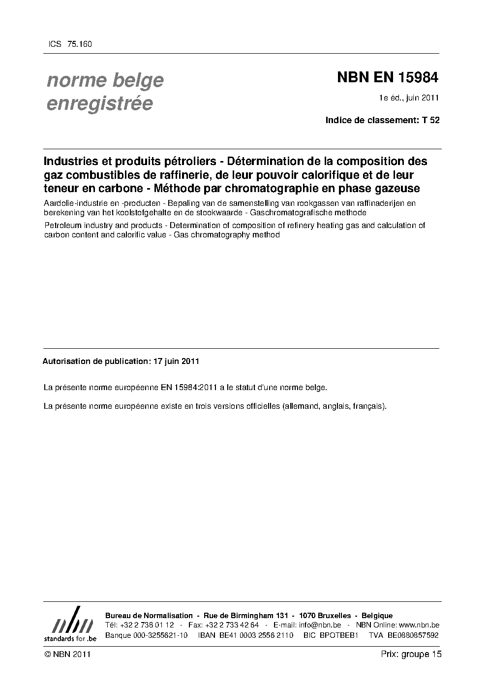 | Publisher | Bureau de Normalisation Belge (NBN) |