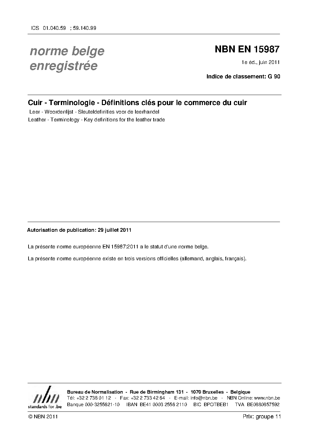 | Publisher | Bureau de Normalisation Belge (NBN) |