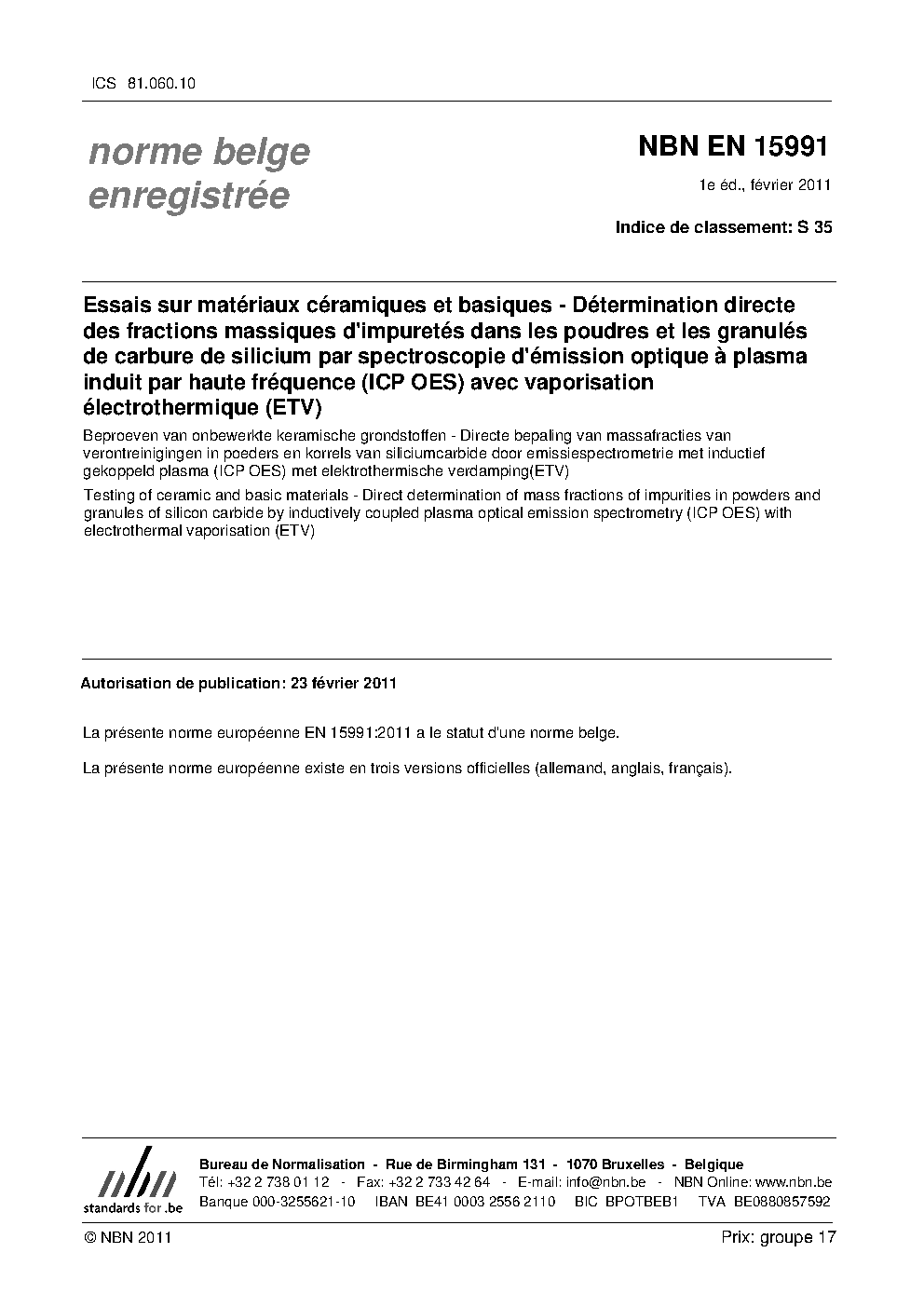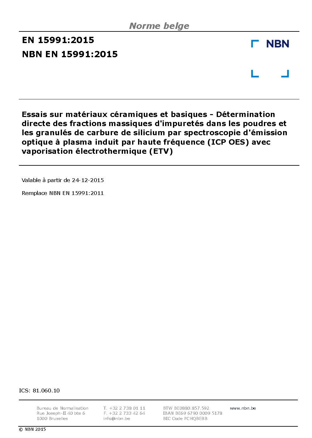 | Publisher | Bureau de Normalisation Belge (NBN) |