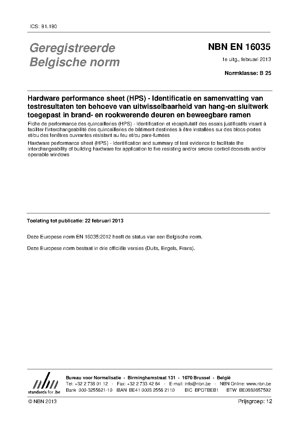 | Publisher | Bureau de Normalisation Belge (NBN) |