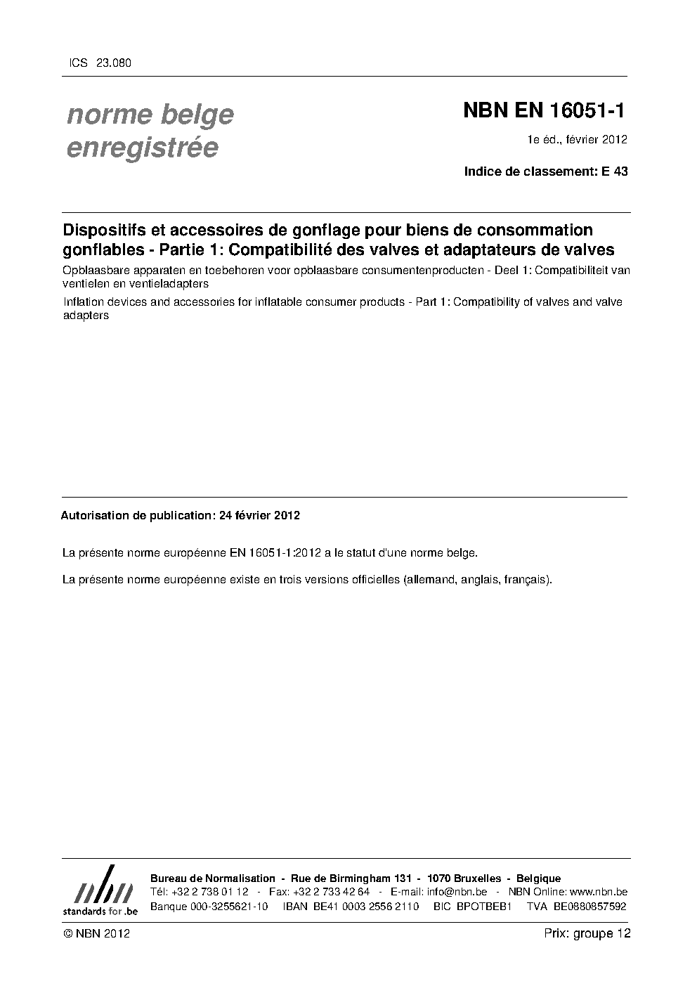 | Publisher | Bureau de Normalisation Belge (NBN) |