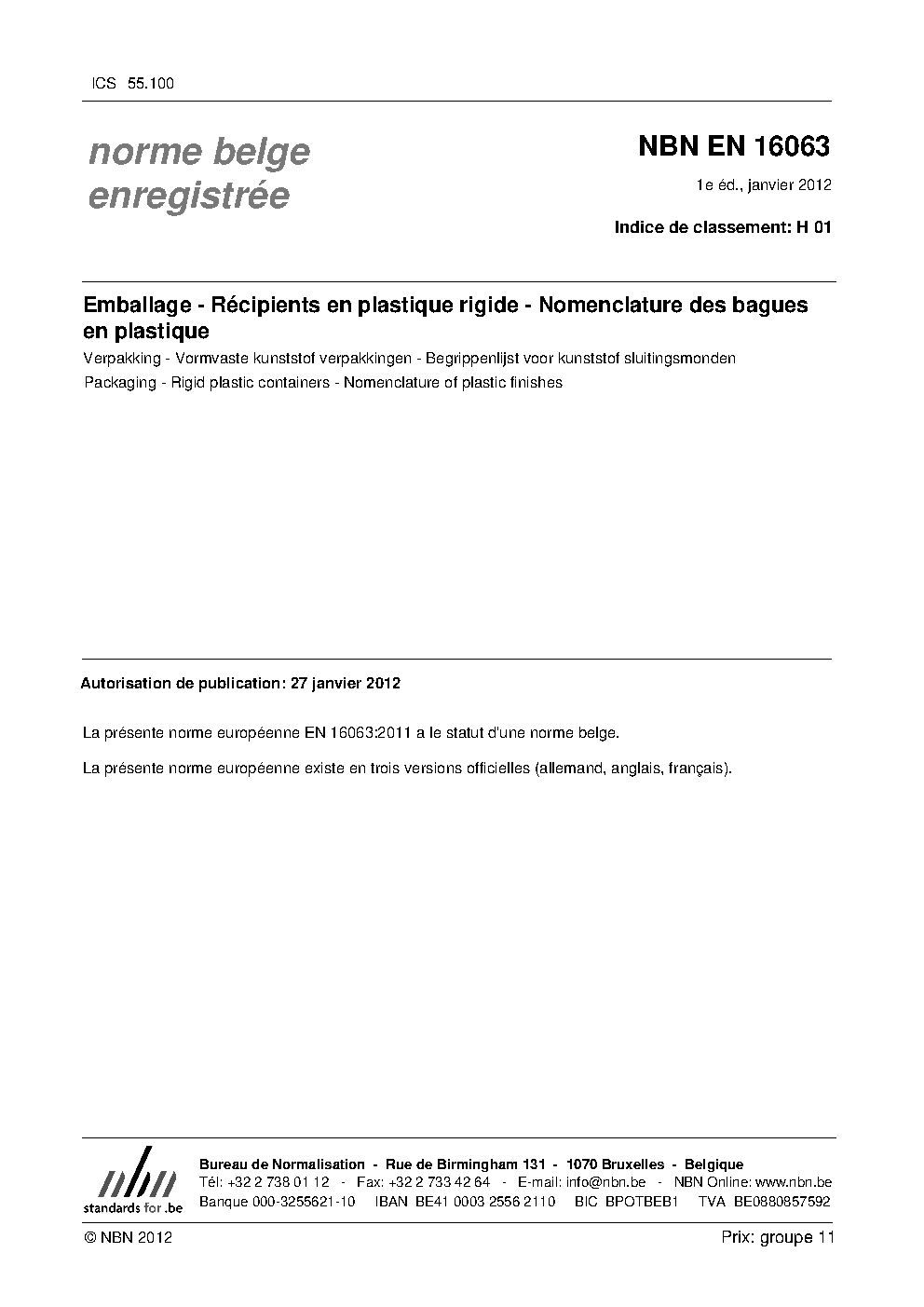 | Publisher | Bureau de Normalisation Belge (NBN) |