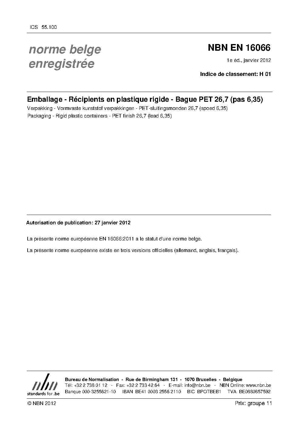 | Publisher | Bureau de Normalisation Belge (NBN) |