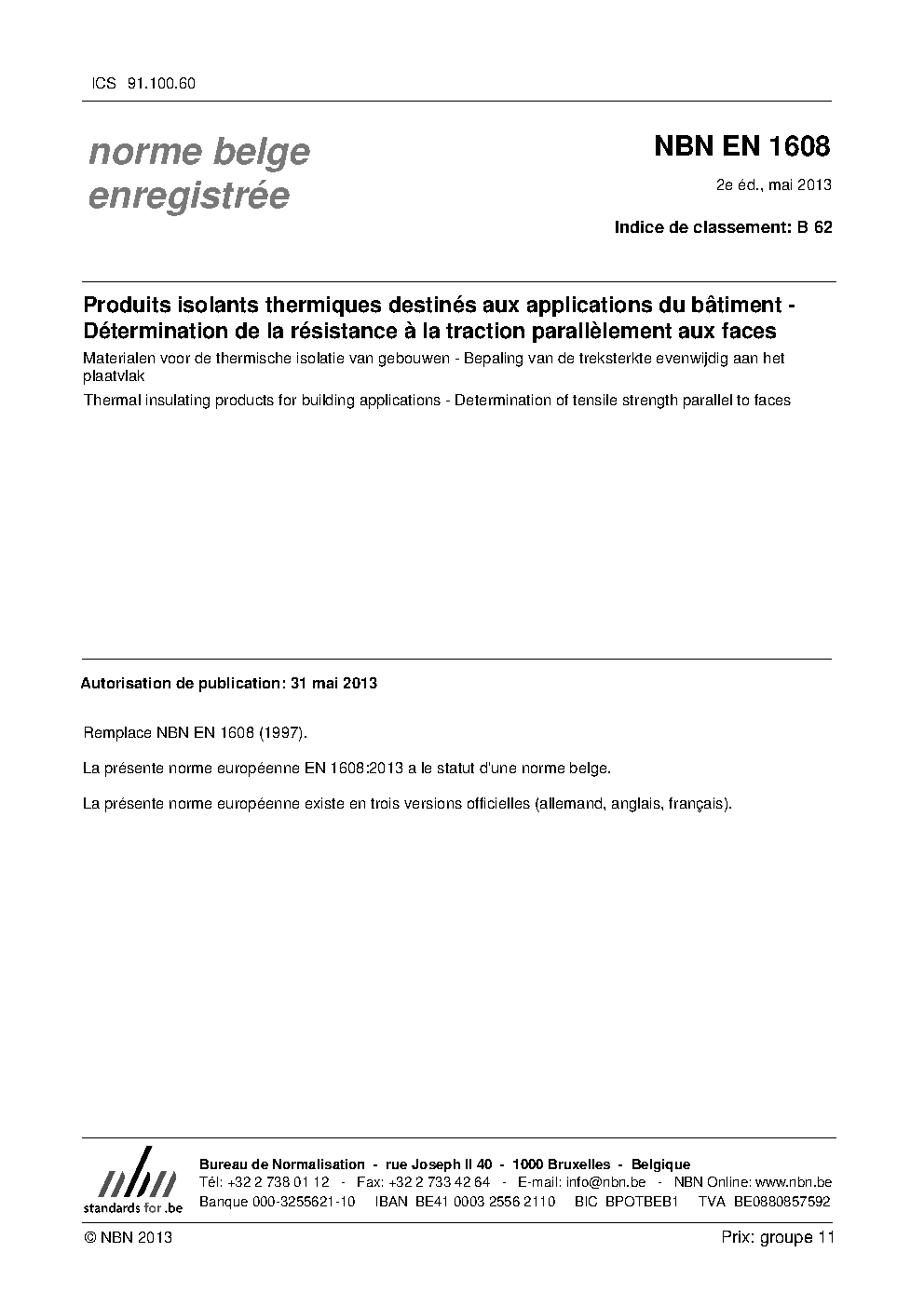 | Publisher | Bureau de Normalisation Belge (NBN) |