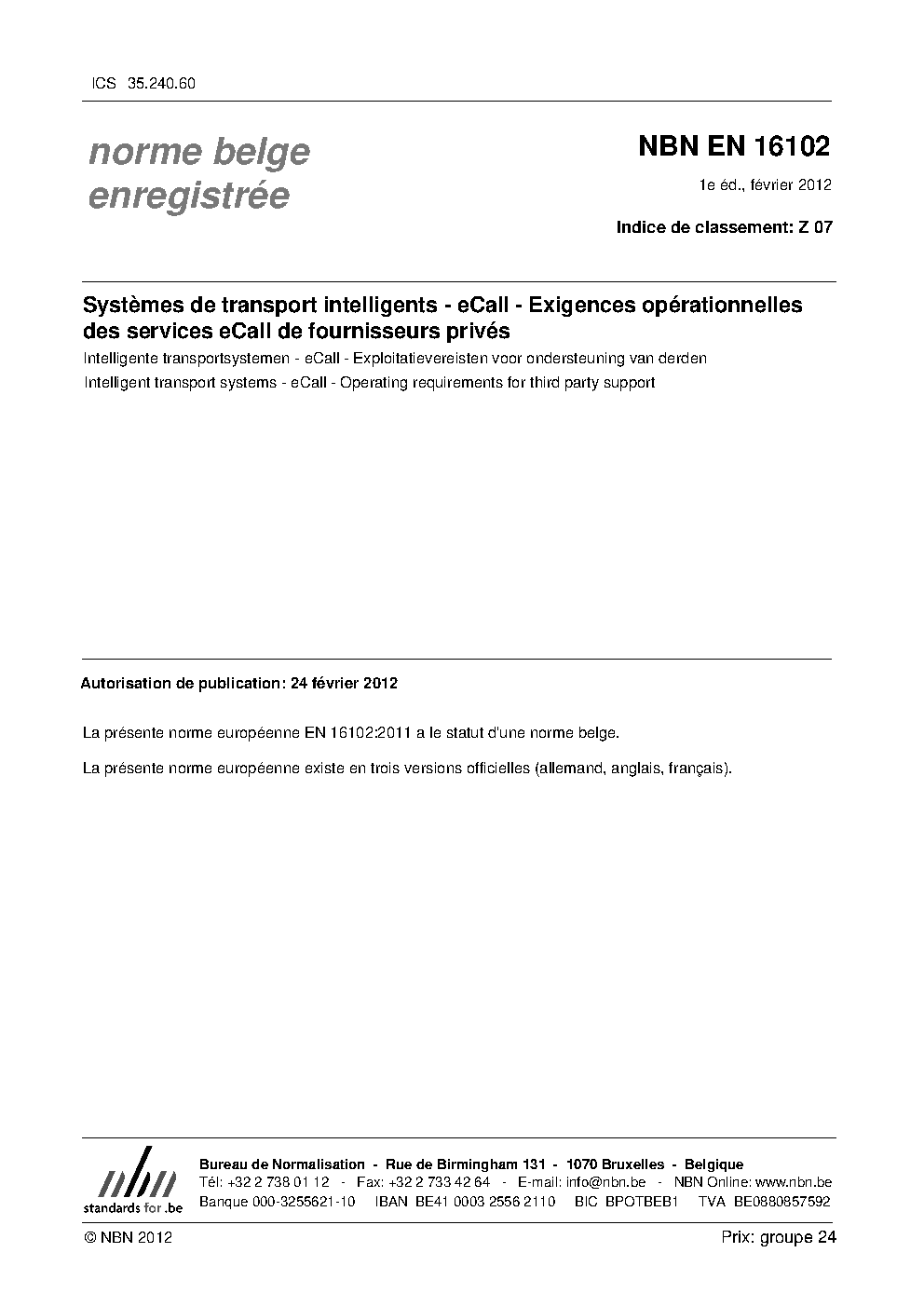 | Publisher | Bureau de Normalisation Belge (NBN) |