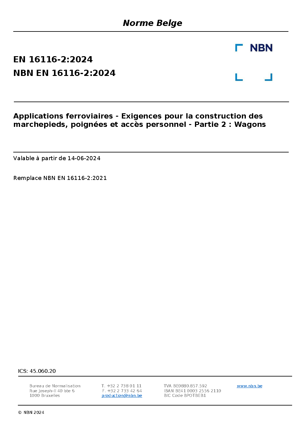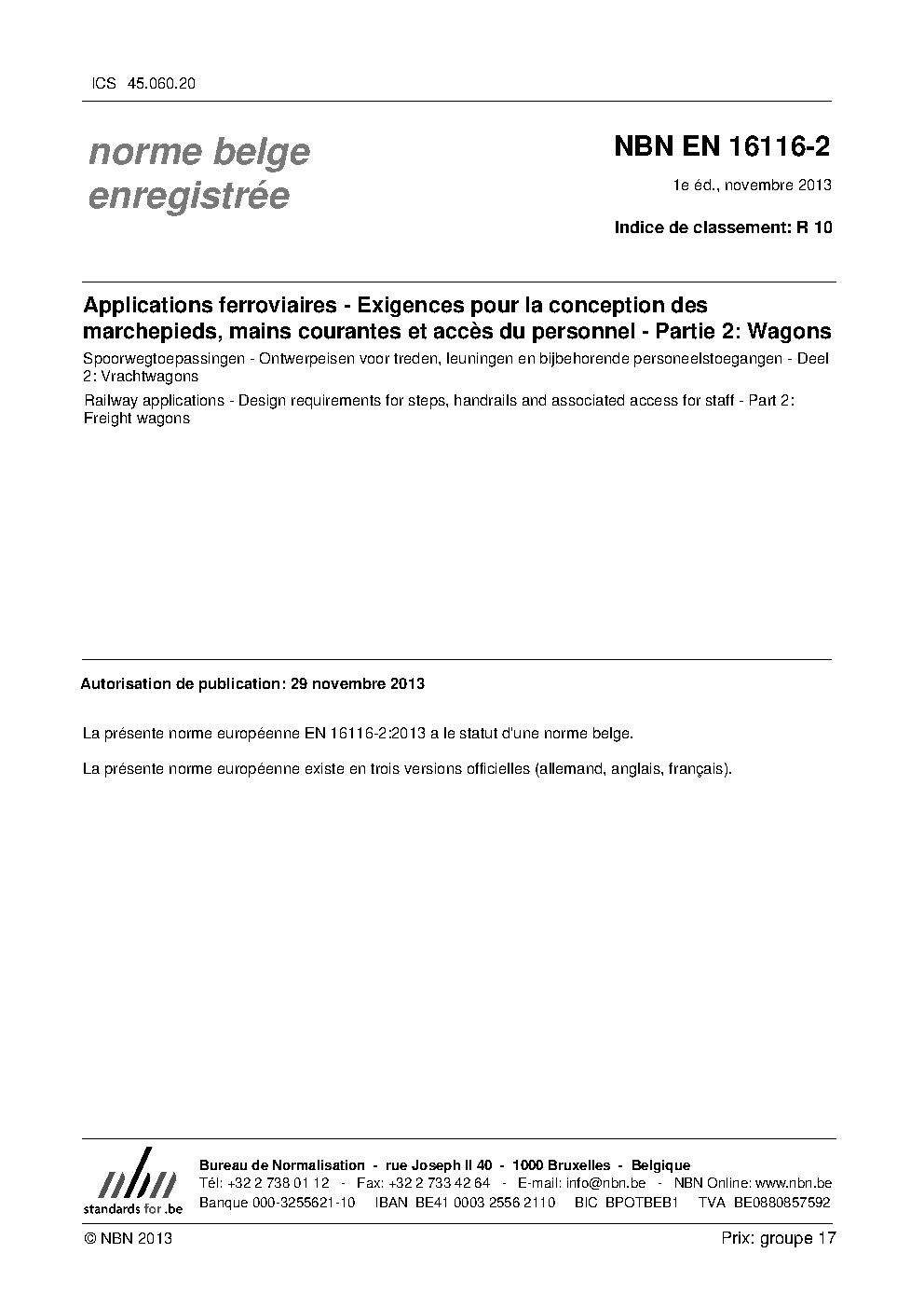 | Publisher | Bureau de Normalisation Belge (NBN) |