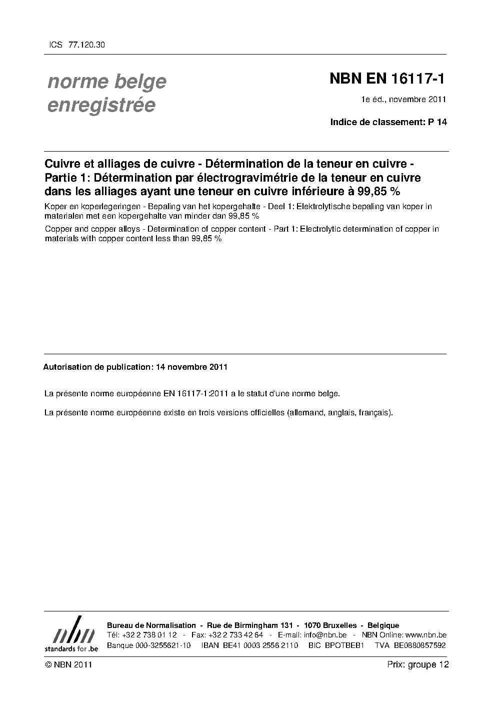 | Publisher | Bureau de Normalisation Belge (NBN) |