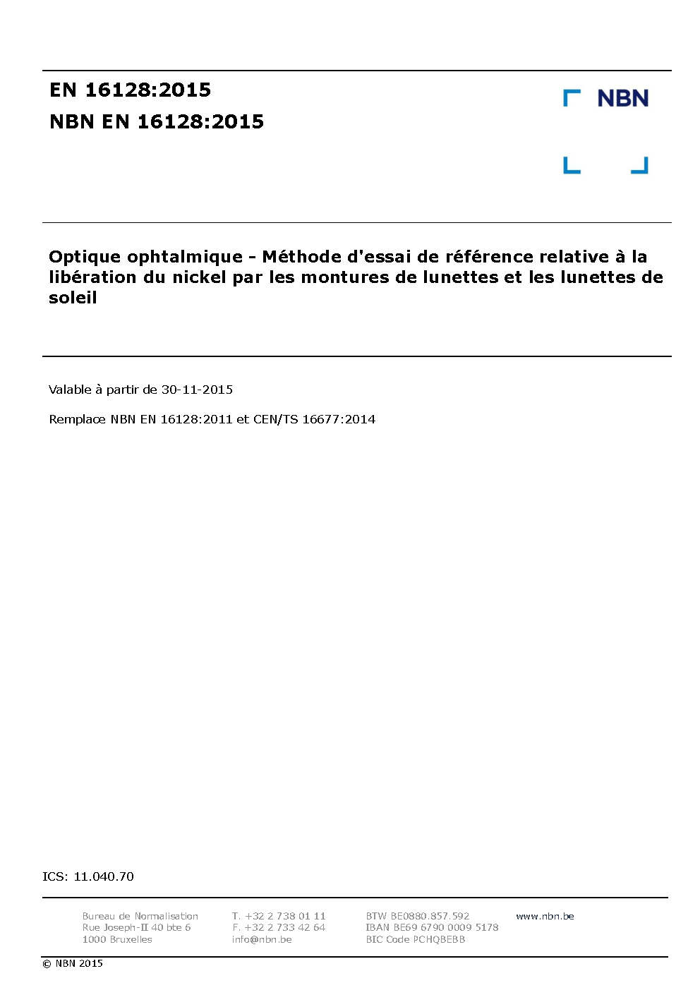 | Publisher | Bureau de Normalisation Belge (NBN) |
