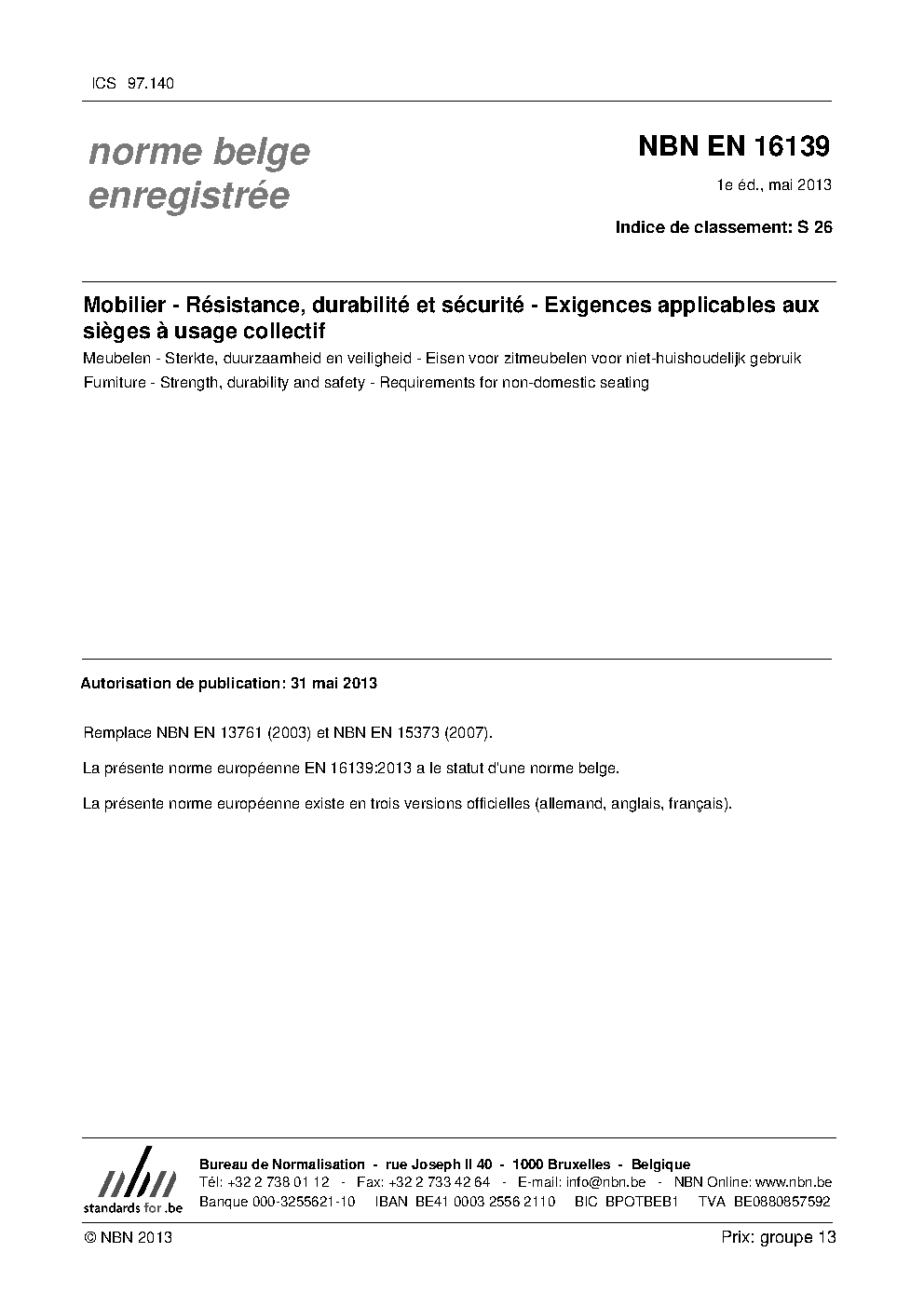 | Publisher | Bureau de Normalisation Belge (NBN) |